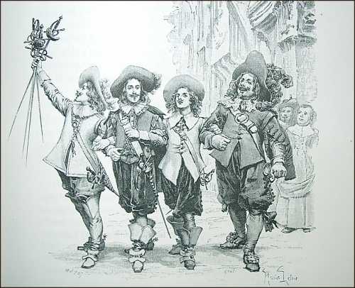 In "Die drei Musketiere", einem Roman von Alexandre Dumas, verlässt D’Artagnan seine Heimat, die Gascogne, in Richtung Paris. Er will in den Dienst von König Ludwig XIII. treten. Jedoch passieren ihm auf dem Weg dorthin einige Missgeschicke, die vor allem auf sein Temperament zurückzuführen sind. Er kann seinen Mut unter Beweis stellen und freundet sich mit den unzertrennlichen drei Musketieren Athos, Porthos und Aramis an. Er selbst wird im späteren Verlauf der Geschichte in das Corps der Musketiere aufgenommen.