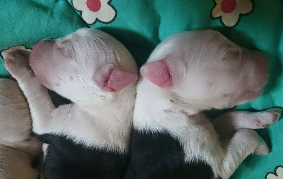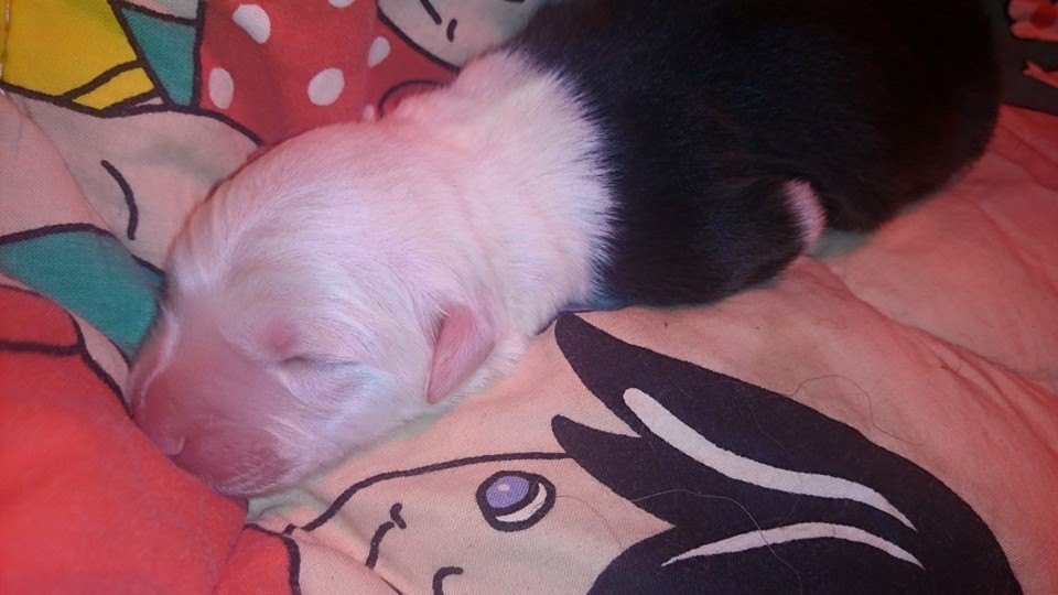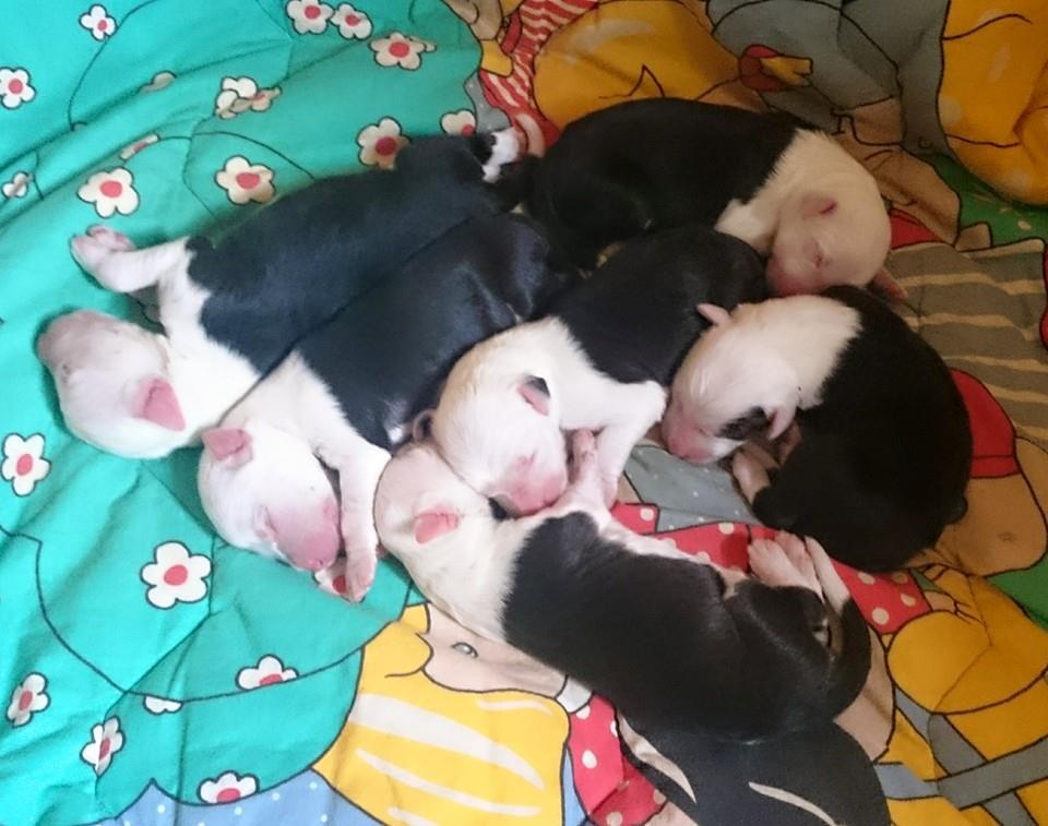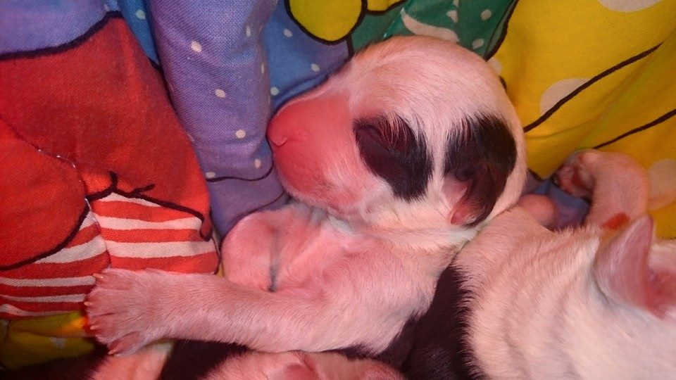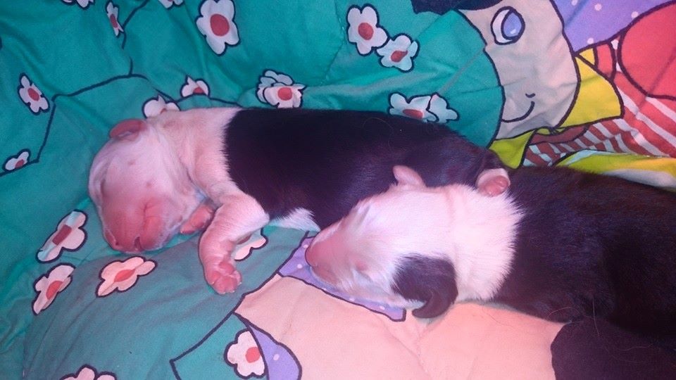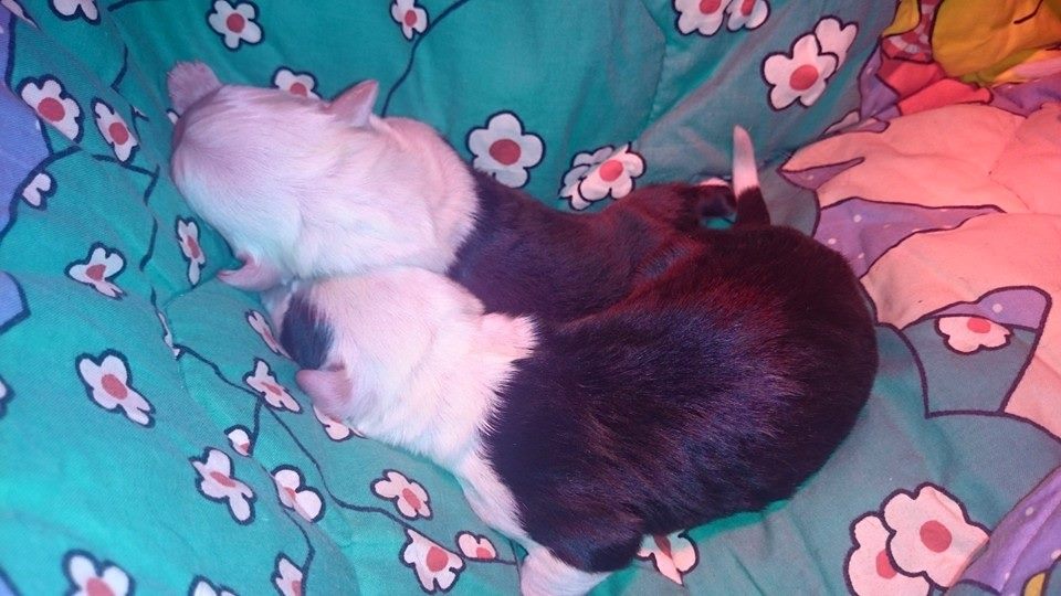 Hallo, Welt, wir sind da. Mama hat sich entschieden, uns nachts zur Welt zu bringen und so ging es am 6. Mai spät abends los. Der erste Junge kam eine gute halbe Stunde vor Mitternacht zur Welt. Die zeitlichen Abstände zwischen uns einzelnen Kindern waren recht groß, so dass es fast sieben Uhr am nächsten Morgen war, bis der sechste kleine Bushwagger geboren war. Insgesamt sind wir 4 Jungs und 2 Mädels, also genau die richtige Menge, um eine schöne Welpenzeit zu erleben. Bis wir die nächste Seite im Tagebuch beginnen, wird Herrchen immer wieder mal neue Fotos ganz unten auf diese Seite kleben - also immer schön nachschauen und aktualisieren. Bis bald Eure H-Wurf-Babys 1. Junge, 06.05.2015, 23:26 Uhr, 456 Gramm 2. Junge, 07.05.2015, 0:50 Uhr, 512 Gramm