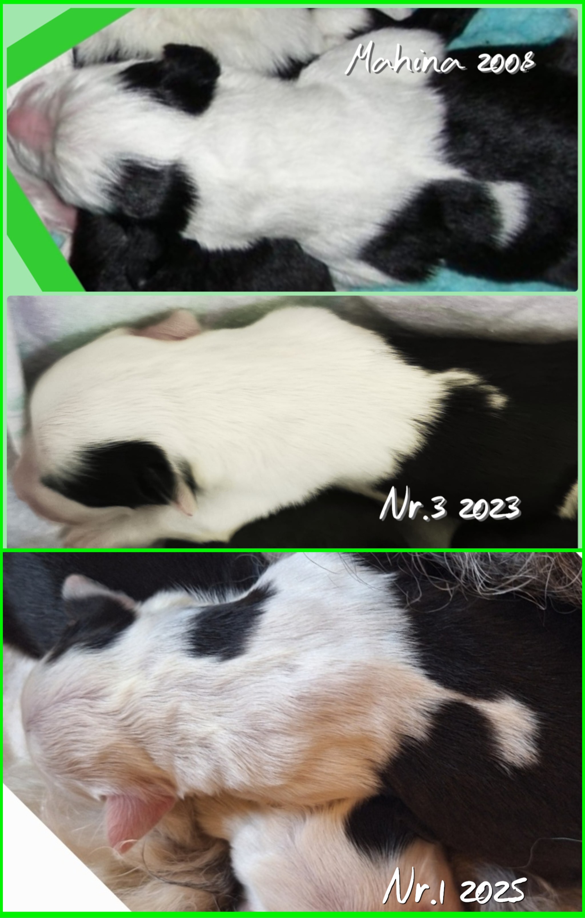 Die Nr.1 trägt übrigens den Arbeitsnamen Maulende Myrte bzw. Moaning Myrtle - dreimal dürft ihr raten, wieso. Liebe Grüße, Udo (Herrchen) Und hier noch die aktuellen Fotos vom Besuch in Herrchens Fotostudio am 29.10.2025. Da sind wir drei Tage alt. ![]() ![]() ![]() ![]()