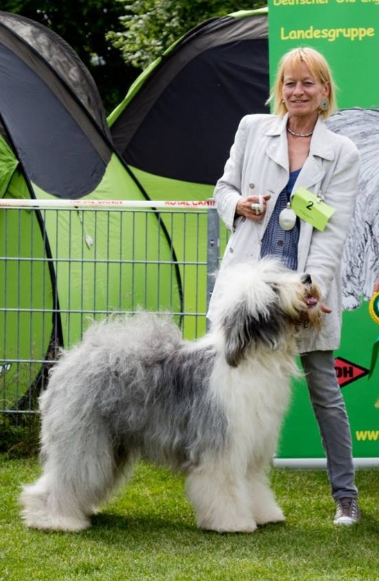 Kampioensclubmatch (Clubsiegerausstellung) der NL Old English Sheepdog Association in Arcen (NL) Richterin Susanna Malacrida (I) Jugendklasse Vorzüglich 2 Fifteen months, very feminine and cobby. Excellent
